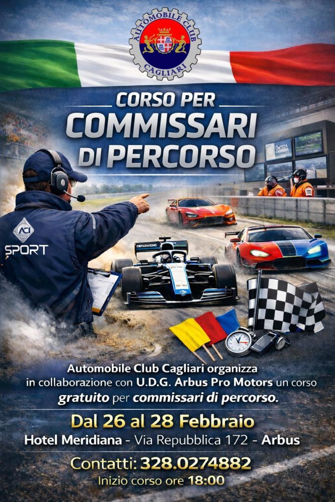 Dal 26 al 28 febbraio, ad Arbus, si svolgerà un Corso per Commissari di Percorso, organizzato dall’Automobile Club Cagliari in